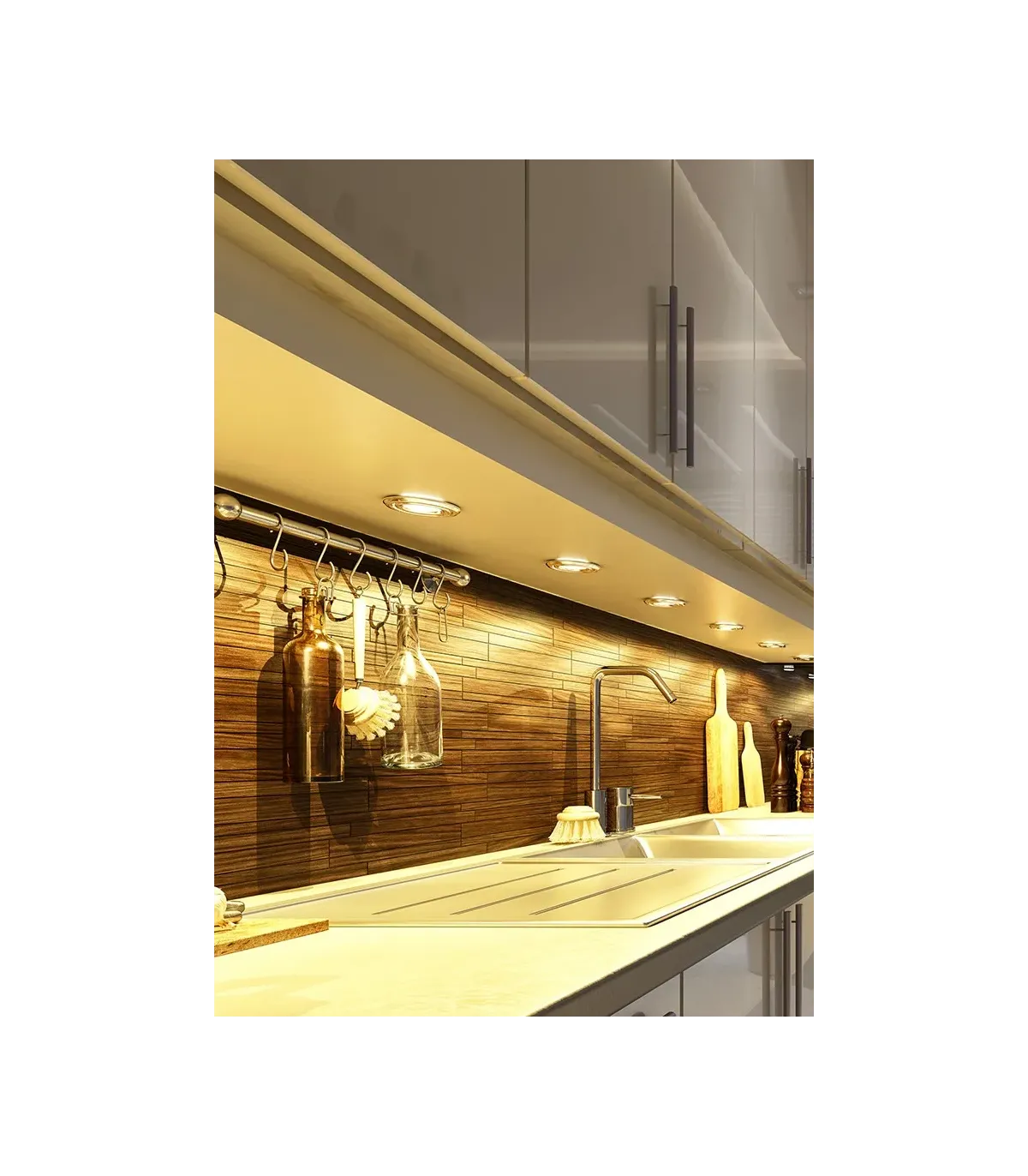 Permiten enfatizar zonas puntuales u objetos. Buena disipación del calor de la bombilla. Uso doméstico o empotrado en mobiliario.